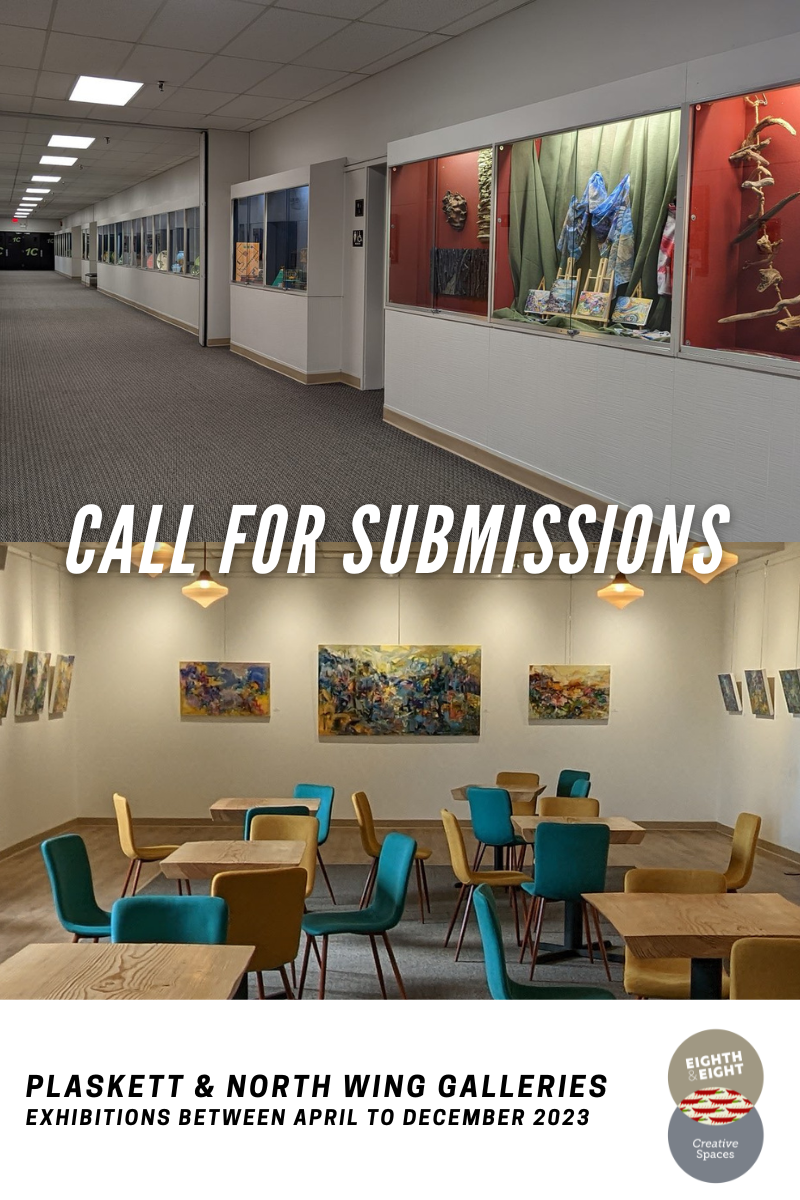 The Plaskett Gallery and North Wing Gallery, part of the Eighth & Eight Creative Spaces/ Massey Theatre complex in New Westminster, are now accepting submissions from visual artists in any media for exhibitions from April to December 2023, with the option of doing a one- or two-month exhibition, pending on availability.